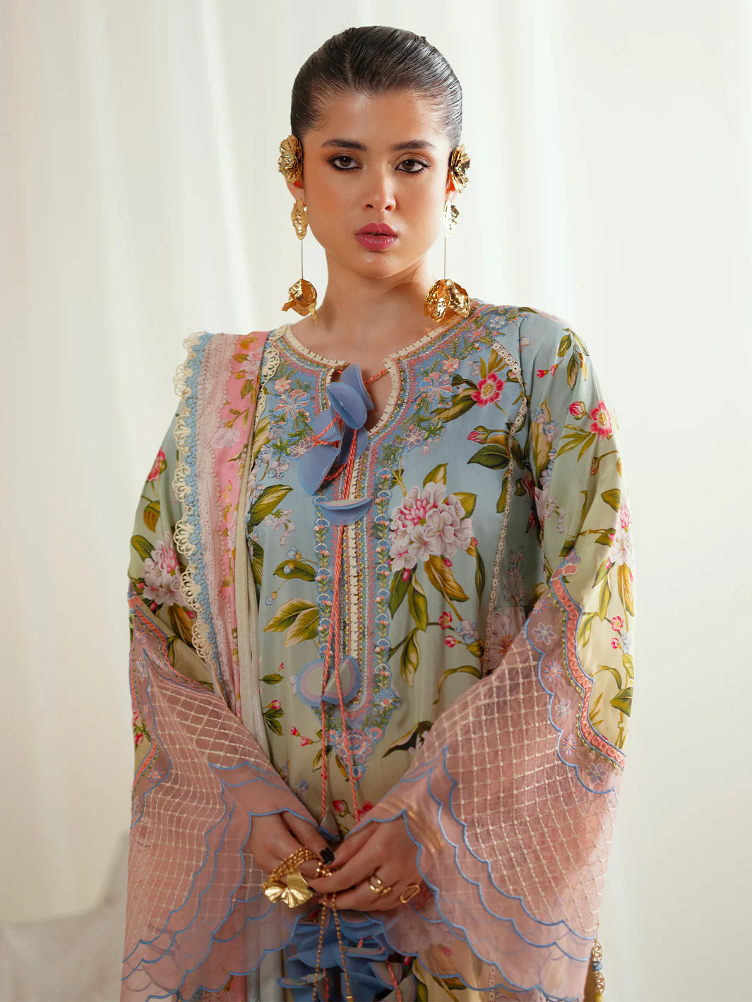 Embroidered Daman Motif On Dyed Organza 1 Piece