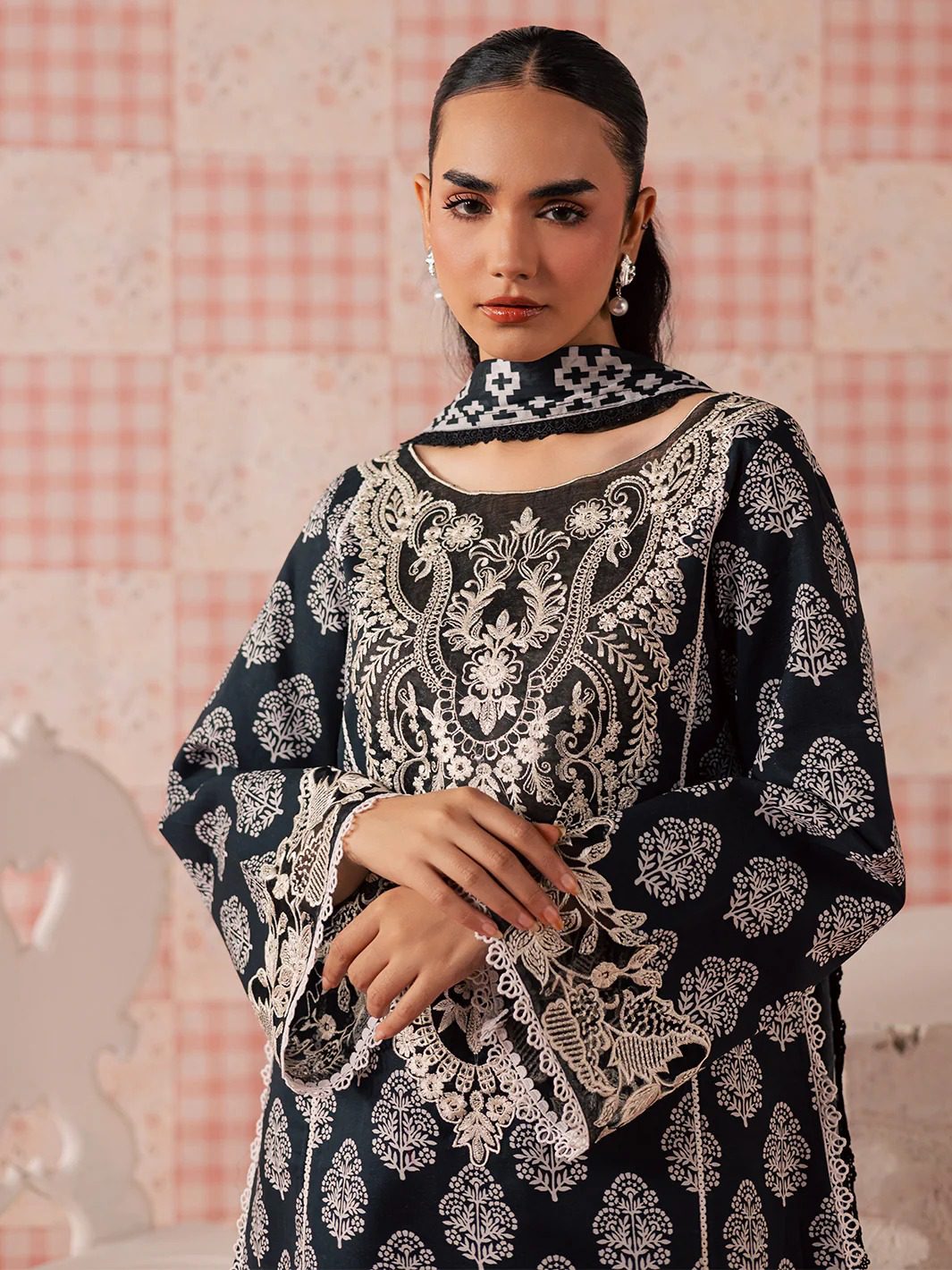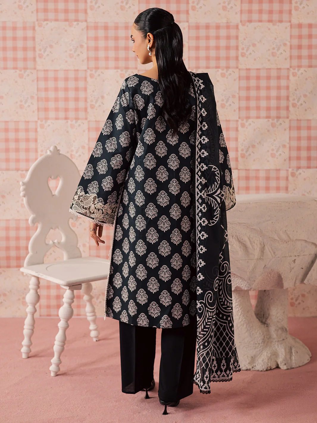 PRINTED LAWN SHIRT 03 MTR EMB NECKLINE 01 PCS EMB FRONT DAMAN 01 PCS EMB SLEEVE LACE 0.90 MTR