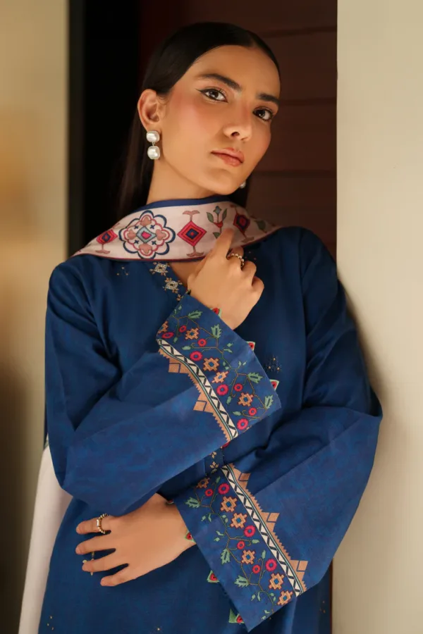 Digital Printed Embroidered Shirt Front (Slub Khaddar) 1.15 meters