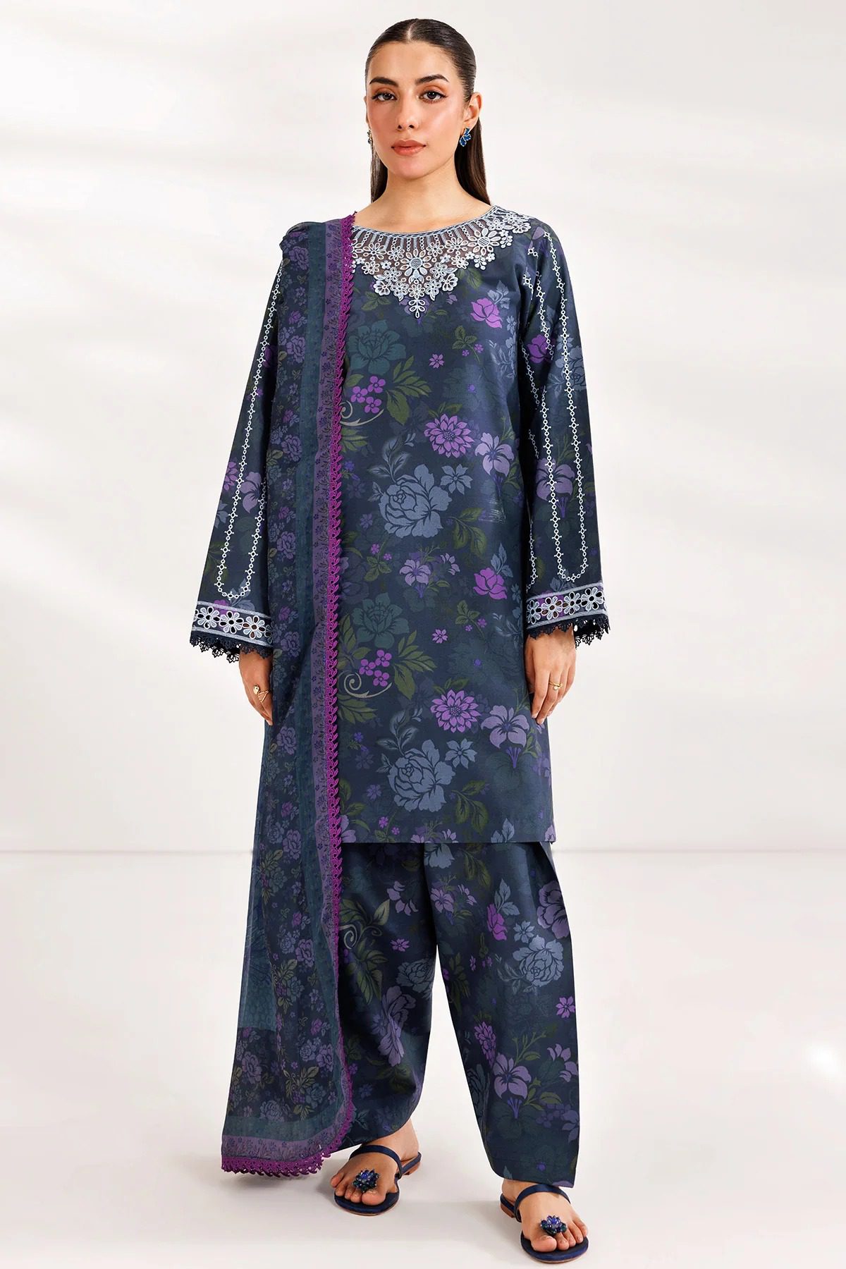 Digital Printed Front, Back & Trouser (3.50 Yards) Digital Printed Borer Embroidered Lawn Sleeves Borer Embroidered Organza Neckline Patch Digital Printed Chiffon Dupatta (2.70 Yards)
