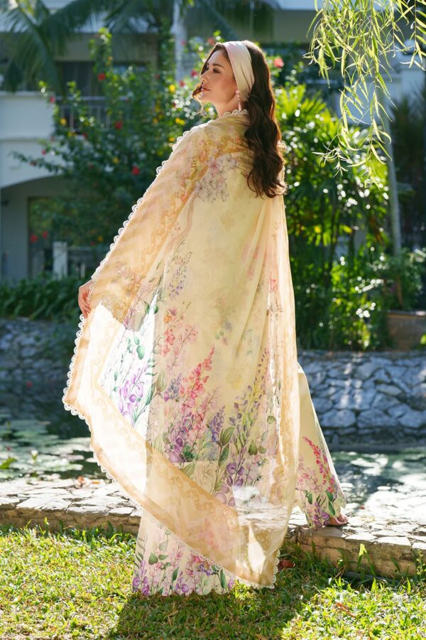 LILA is a charming ensemble featuring a printed lawn shirt enhanced with intricate Chikankari embroidery on the front and delicate sleeve borders. The printed sleeves and back bring subtle sophistication, paired with printed cotton trousers. A flowing chiffon printed dupatta completes the look, exuding effortless elegance.