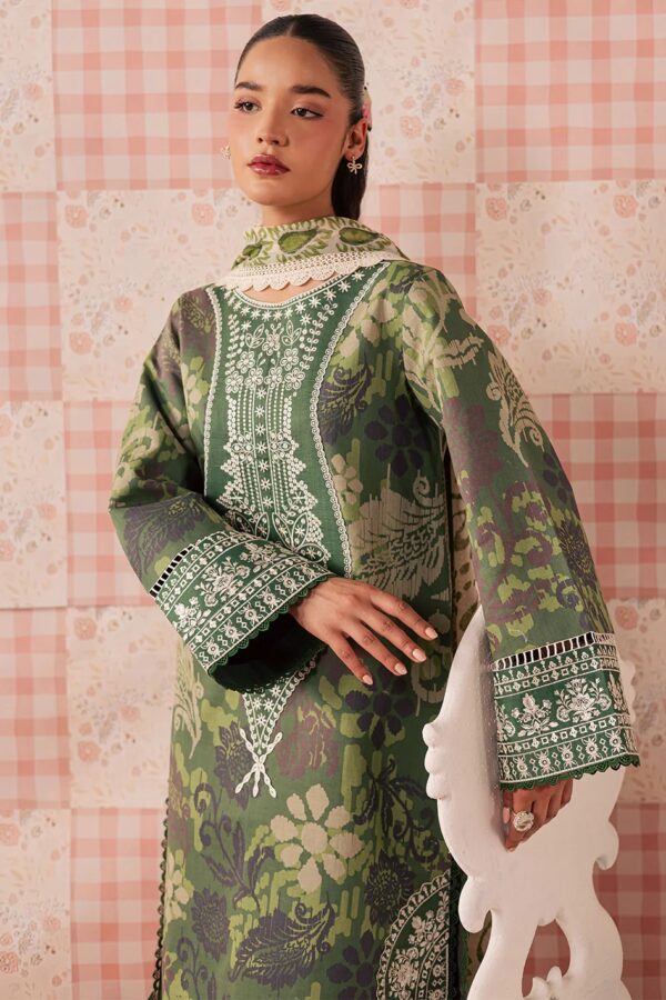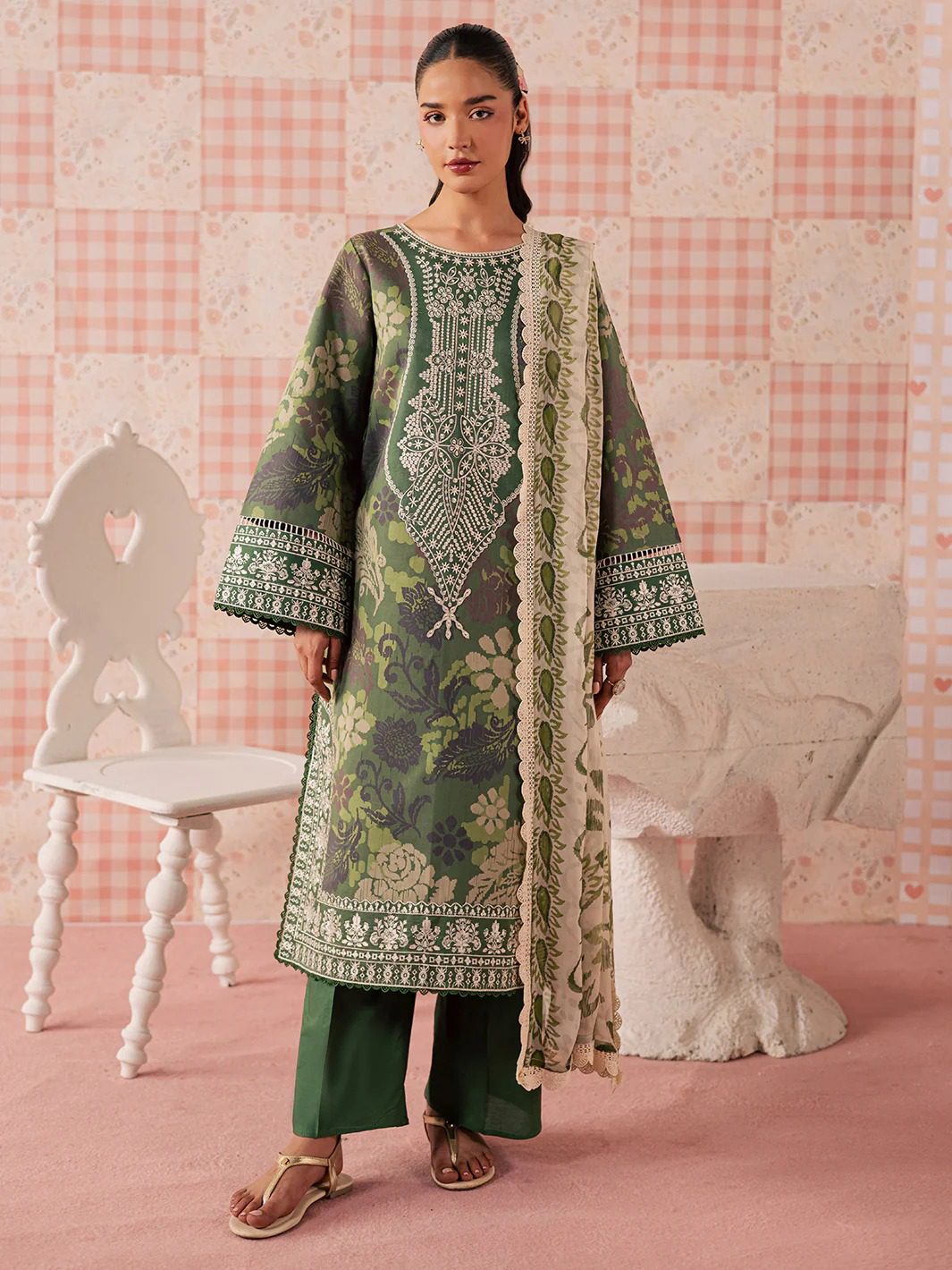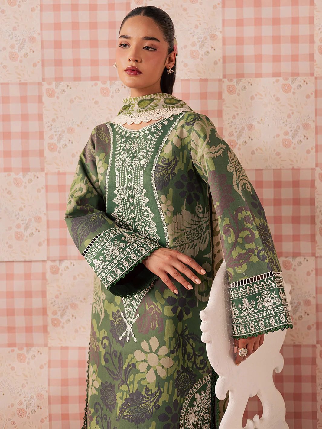PRINTED SHIRT LAWN 03 MTR EMB NECKLINE 01 PCS EMB FRONT PATCH 01 PCS EMB SLEEVE LACE 0.90 MTR