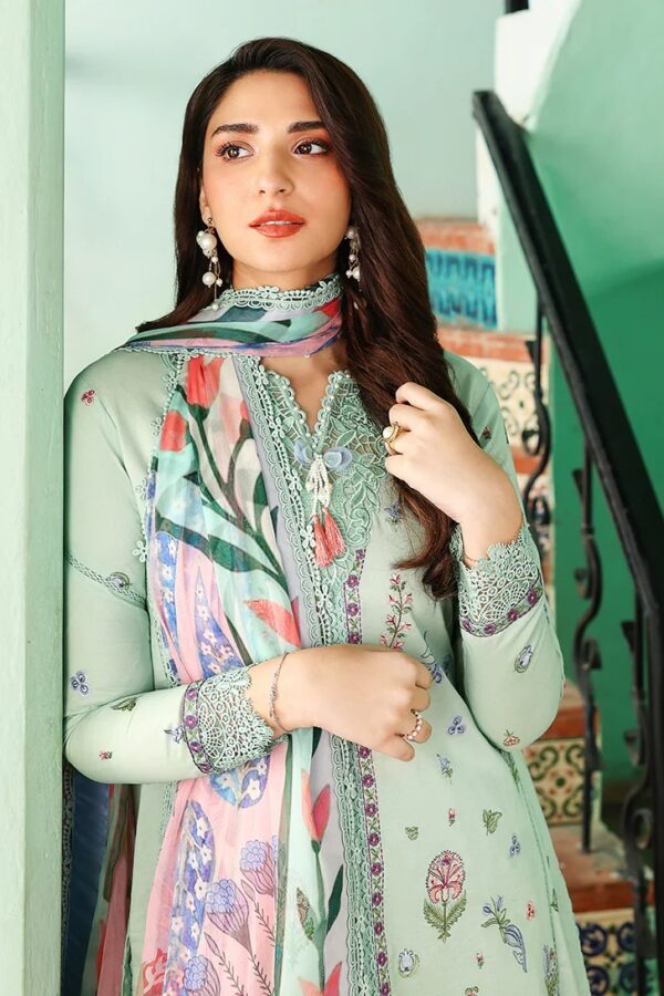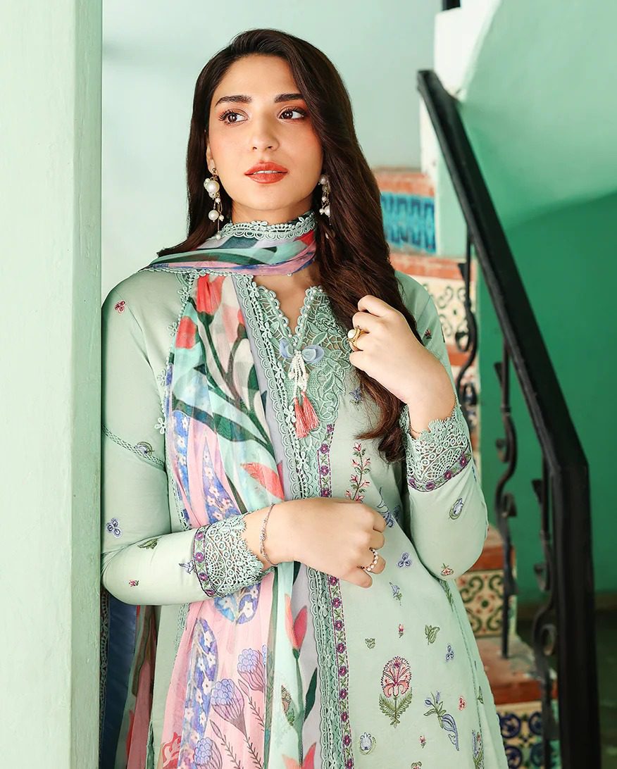 • Embroidered lawn front right panel