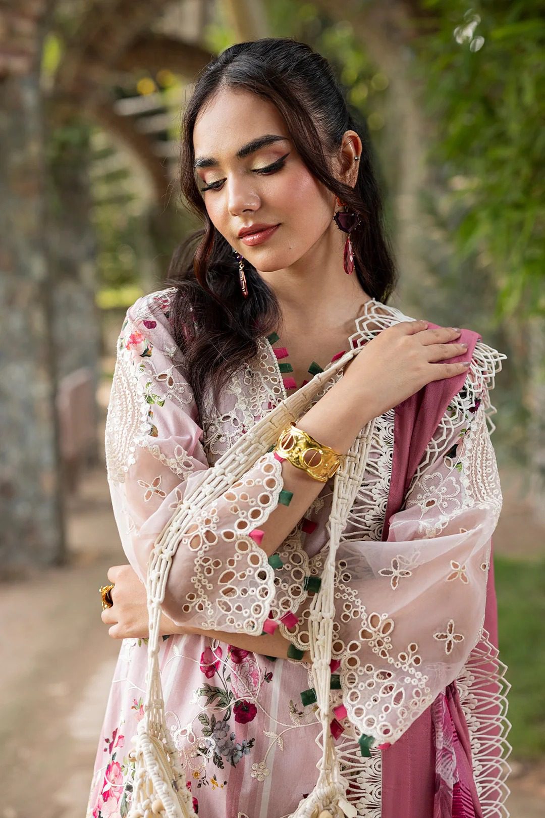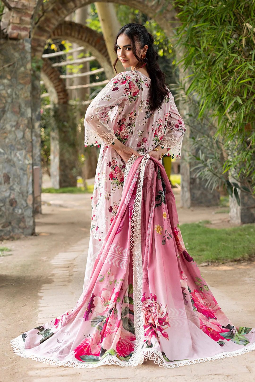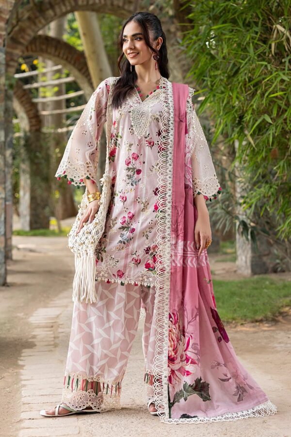 Front: Luxury Printed Lawn Embroidered With Organza Gala Patch +Daman Patch