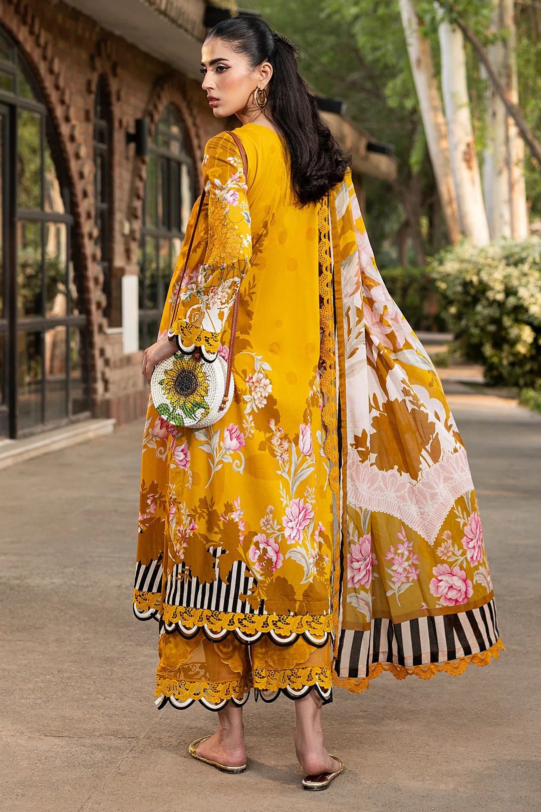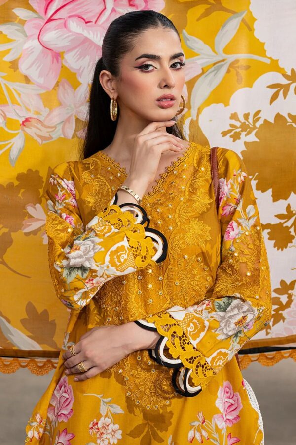 Front: Luxury Printed Lawn With Embroidered Gala Patch + Daman Patch