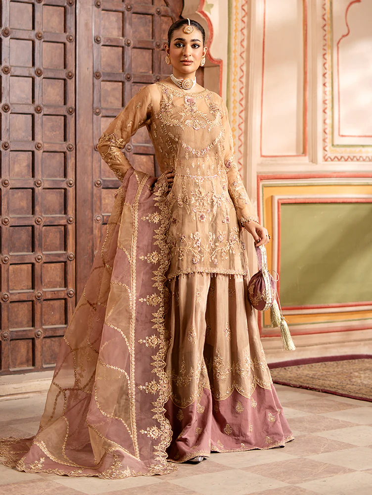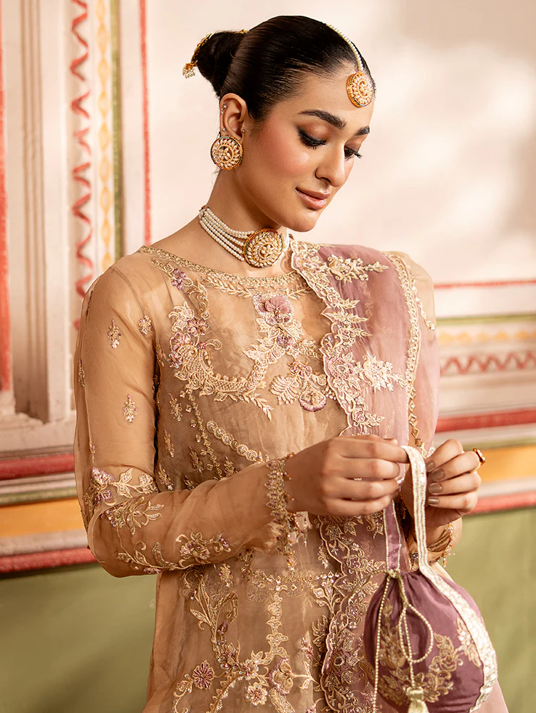 EMBROIDERED ORGANZA SLEEVES WITH H.M WORK 0.67 YDS