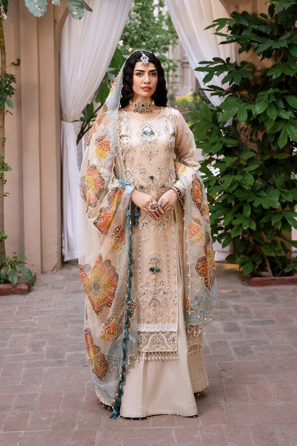 Front : Organza Embroidered with Hand Made & Accessories + Front Border Embroidered HM