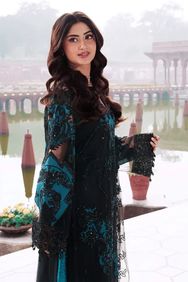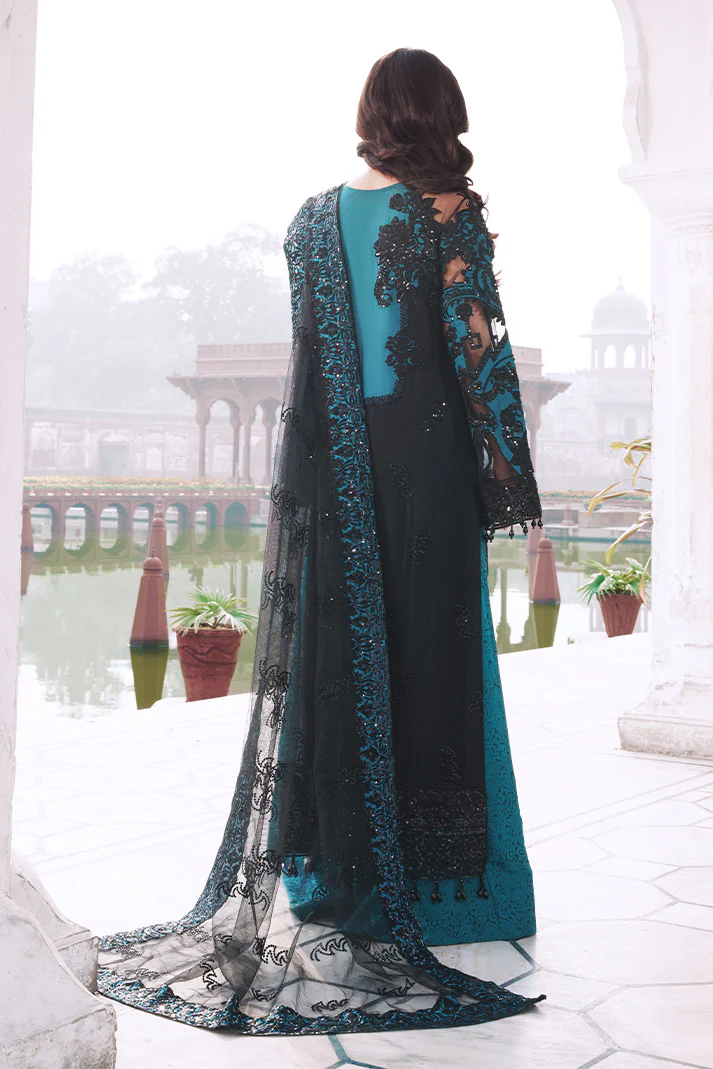 Embroidered net with aplic & stones embellishments for sleeves.