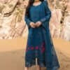 Soft and serene, this powder blue embroidered lawn dress is accented with delicate pastel florals for a graceful summer aesthetic. The embroidered lawn shirt is paired with a printed silk dupatta that adds richness and fluid elegance. Finished with refined organza borders and a breathable cotton trouser, this luxury blue lawn suit is perfect for women seeking light tones with premium craftsmanship. Ideal for summer brunches, daytime festivities, and elegant casual wear, this Pakistani designer lawn outfit delivers effortless sophistication.