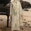 Bold and statement-making, this jet black embroidered lawn dress is accented with rich maroon and ivory detailing for a striking contrast. The embroidered lawn shirt is elevated with a combination of organza and raw silk borders, adding depth and luxurious texture to the design. Paired with a soft embroidered chiffon dupatta, this black luxury lawn suit balances drama with elegance. The plain cotton trouser ensures breathable comfort while maintaining a polished silhouette. Designed for women who love powerful color contrasts, this Pakistani designer black lawn outfit is perfect for festive gatherings, evening events, and standout summer styling.