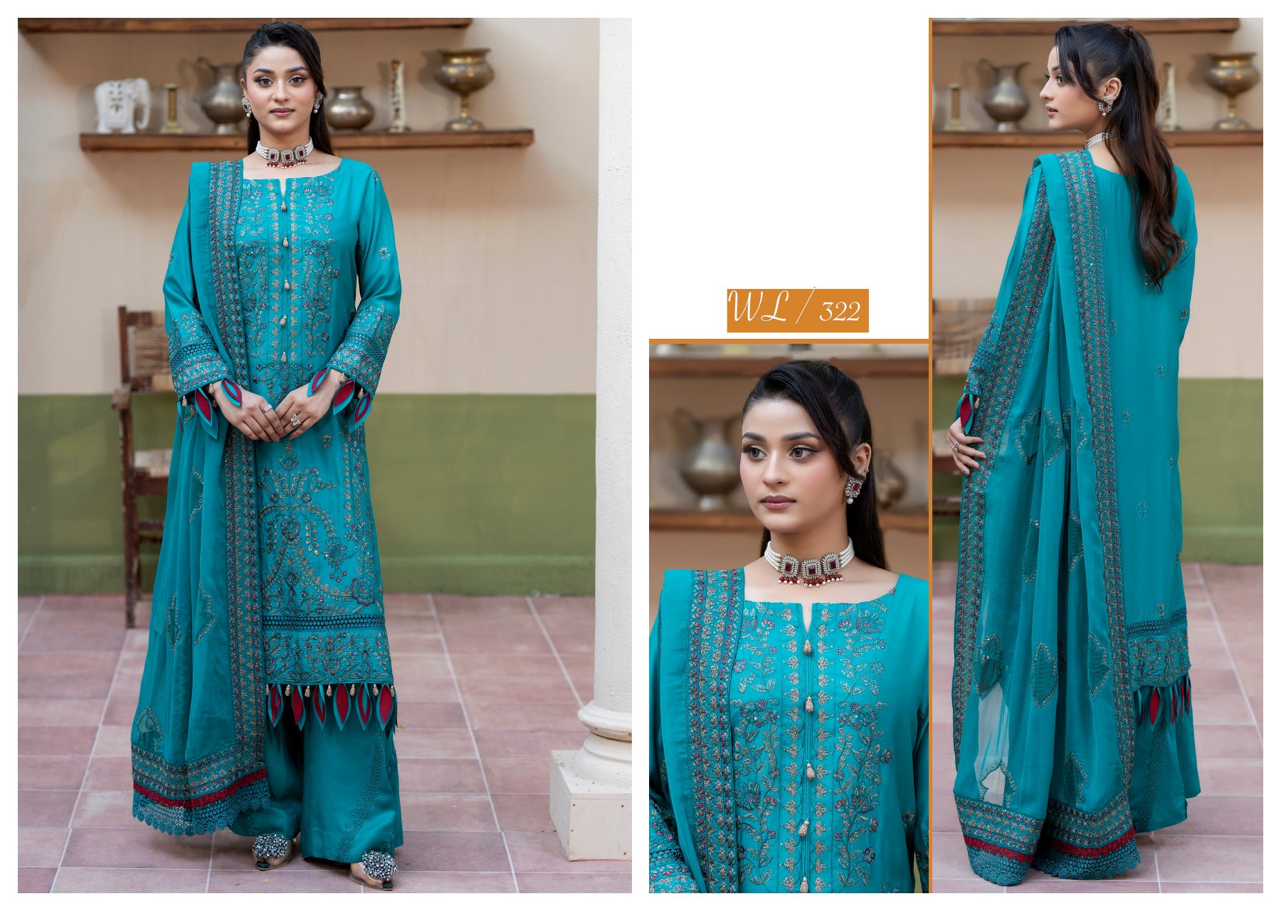 Viscose Silk Embroidered Shirt Bamber Crinkle Embroidered Dupatta With Trouser